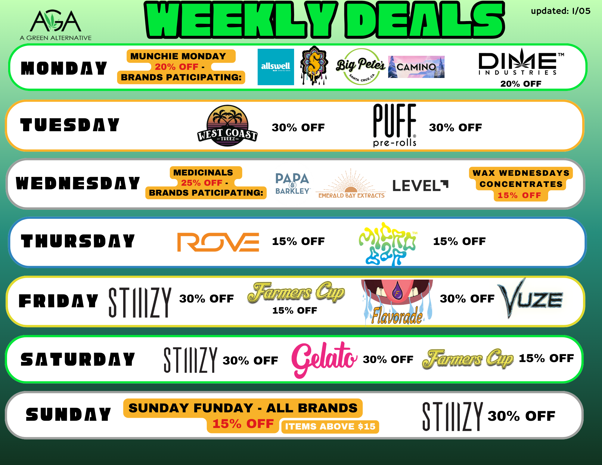 A Green Alternative™ is the first legal dispensary in San Diego. “Los Primeros”. AGA is a marijuana dispensary with the mission of creating a professional and safe atmosphere with cannabis products.
