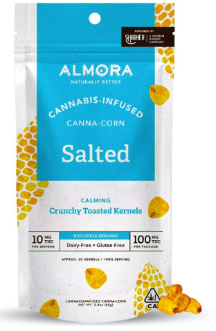 Almora's Salted Canna-Corn Kernels have the perfect crunch! They are tossed in oil and baked to crispy perfection. The only other ingredient is salt - keeping it simple. At approximately 280 kernels per package and .3mg THC/kernel, these are a great micro-dosing option for lower dose consumers. Dairy & Gluten Free; Kosher-friendly; Vegan