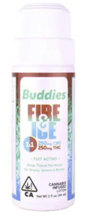 Buddies award winning Fire & Ice Topical. From athletes to grandmas this 1:1 (250mg CBD/250mg THC) topical does wonders for wellness. Fire & Ice is all natural has therapeutic strength and is long lasting. It is non-greasy has an easy roller application and is enhanced with organic essential oils.
