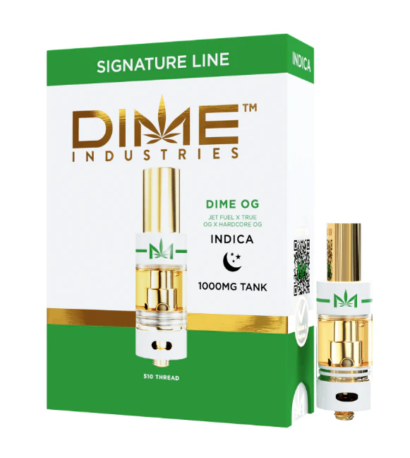 Total THC26.07%SIGNATURE LINE: Dime OG (INDICA):Our own OG strain was created by crossing Jet Fuel Hardcore OG and True OG. The flavor profile is meant to remind users of that picture-perfect OG like the one you could smell through a dime bag. With diesel lemon pine and sweet notes this will quickly become one of your favorite flavors. Even though Dime OG is a heavy Indica the Jet Fuel will lift you off into that dream-like state and have you “thinking higher”.Genetics: Jet Fuel x True OG x Hardcore OGEffects: Happy Sleepy Euphoric