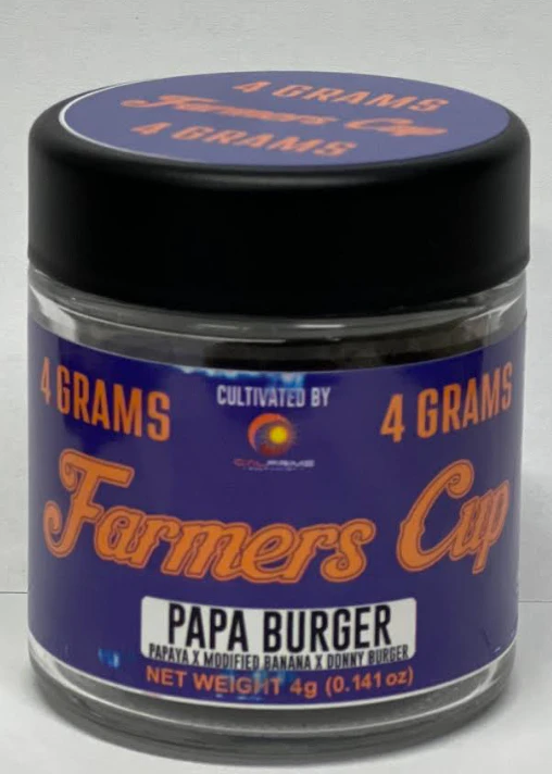 Papa Burger, a strain from California Seed Bank, is an indica hybrid known for its creamy, tropical flavor profile with notes of papaya and banana layered over a savory funk, and potent effects.