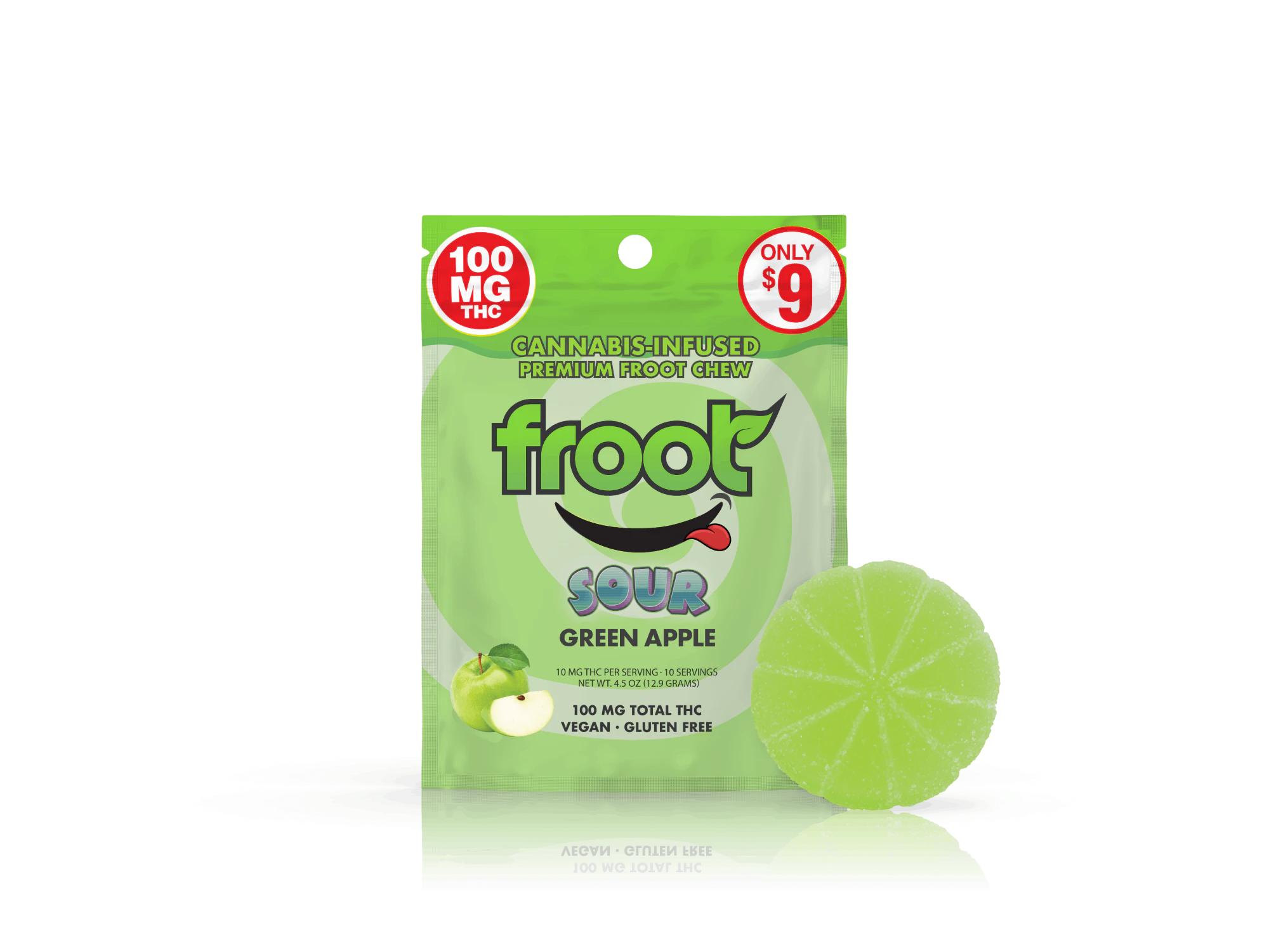 The best tasting infused gummy ever! Froot Premium froot chews are made from the best plants on Earth!We only use the highest quality cannabis oil to infuse into Froot creating an incredibly tasty consistently dosed Froot chew every time.Daytime nighttime or anytime... Enjoy Froot! Vegan Gluten Free Dairy Free 100mg total THC - 100mg x 1-Piece (Gummy is perforated into 10 (10mg) easy-to-cut pieces)