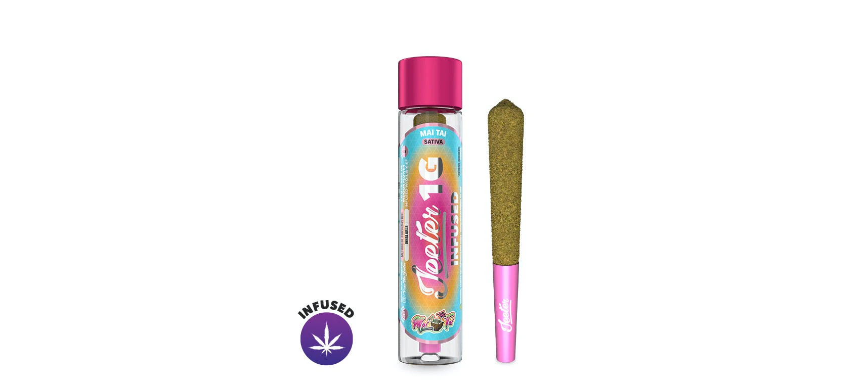 Mai Tai Jeeter Infused Rolled Joint: 1g Joint | Sativa | Indoor Grown Infused with Liquid Diamonds & Kief The Mai Tai strain is a tropical sativa that likely gets its sweet and tangy terpene profile from crossing Maui Waui with Tutti Frutti. However there is some debate over this strain’s genetics as some claim it to be the cross between Sunset Sherbet and Purple Punch. When you open up a package of Mai Tai you’ll be greeted with notes of citrus and berries combined with hints of fresh damp earth and tropical flowers similar to what the cocktail offers. The taste is similar to the exhale as its flavor becomes even more like its fruity cocktail cousin.