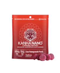 10 pieces x 10mg/gummy = 100mg/bag Kanha Nano utilizes nanomolecular technology to create the first fast-acting gummies in the industry. We take our award-winning great-tasting gummies and infuse them with cannabinoid particles smaller than a wavelength of light which increases the speed and amount of THC that enters into your bloodstream. Our Cran-Pomegranate Punch gummies are tart yet sweet and made with sativa terpenes which induce a stimulating and uplifting state of mind in just 10-20 minutes.