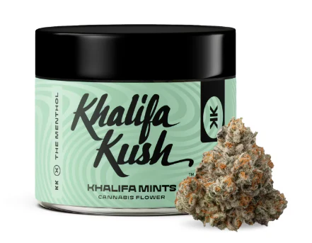 Khalifa Mints is a hybrid marijuana strain, from the rapper Wiz Khalifa's Khalifa Kush brand. It's a cross of Khalifa Kush and The Menthol, selected by Wiz himself, and is the first official release from the KK brand. The inhale envelopes the palette with smooth, minty smoke that tastes of Kush creaminess, with hints of citrusy gas noticeable upon the exhale. The high is uplifting, active, and cerebral, without taking you over the top. Just like KK, it’s perfect for both day and night. The presentation features frosty, silver-green buds with touches of purple, giving it a unique look and feel. Similar to KK, its small calyxes/bracts make up a fine network of pistils with a heavy, silvery frosting of trichomes. It’s everything you love about KK, plus a minty fresh kick.