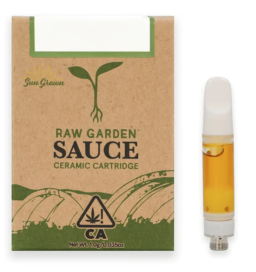 Raw Garden Sauce CartridgeAll the Flavor All the Feels.Dab experience vape convenienceAward Winning QualityCrafted from Raw Garden's HIGHly acclaimed live resin dabbable our Sauce cartridge lets you experience a dab's full spectrum effects and flavor in a convenient on-the-go form.California CannabisWe proudly use 100% sun-grown cannabis that is grown on our farms in coastal California. Combined with our state-of-the-art flash-freezing process immediately after harvest we bring you cannabis in its freshest form.Farm Fresh Lab Tested. We hand-select the finest cultivars and minimally process them to maintain their natural profiles. Our Sauce is rigorously third-party lab tested to ensure a clean and trustworthy product. Maximum flavor with minimal refinement — just pure resin.Premier Hardware: Our Sauce cartridges feature advanced ceramic technology delivering consistent rich flavor and a smooth hit every time.