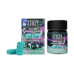 TASTE: Mixed Berries Sweet FruityFEELING: Relaxed Euphoric SleepyDESCRIPTION: White Berry is formulated for those that enjoy the fusion of delicious and uniquefruit flavors. Now offering 2:1 THC to CBN gummies White Berry offers a soothingand balanced high for those looking to enhance their night time experience.These delectableedibles harness the relaxing powers of cannabinol (CBN) packed in a delicious and mouthwatering gummy to deliver a long lasting and peaceful high helping you unwind and relax intobliss.