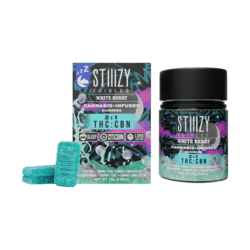 TASTE: Mixed Berries Sweet FruityFEELING: Relaxed Euphoric SleepyDESCRIPTION: White Berry is formulated for those that enjoy the fusion of delicious and uniquefruit flavors. Now offering 2:1 THC to CBN gummies White Berry offers a soothingand balanced high for those looking to enhance their night time experience.These delectableedibles harness the relaxing powers of cannabinol (CBN) packed in a delicious and mouthwatering gummy to deliver a long lasting and peaceful high helping you unwind and relax intobliss.