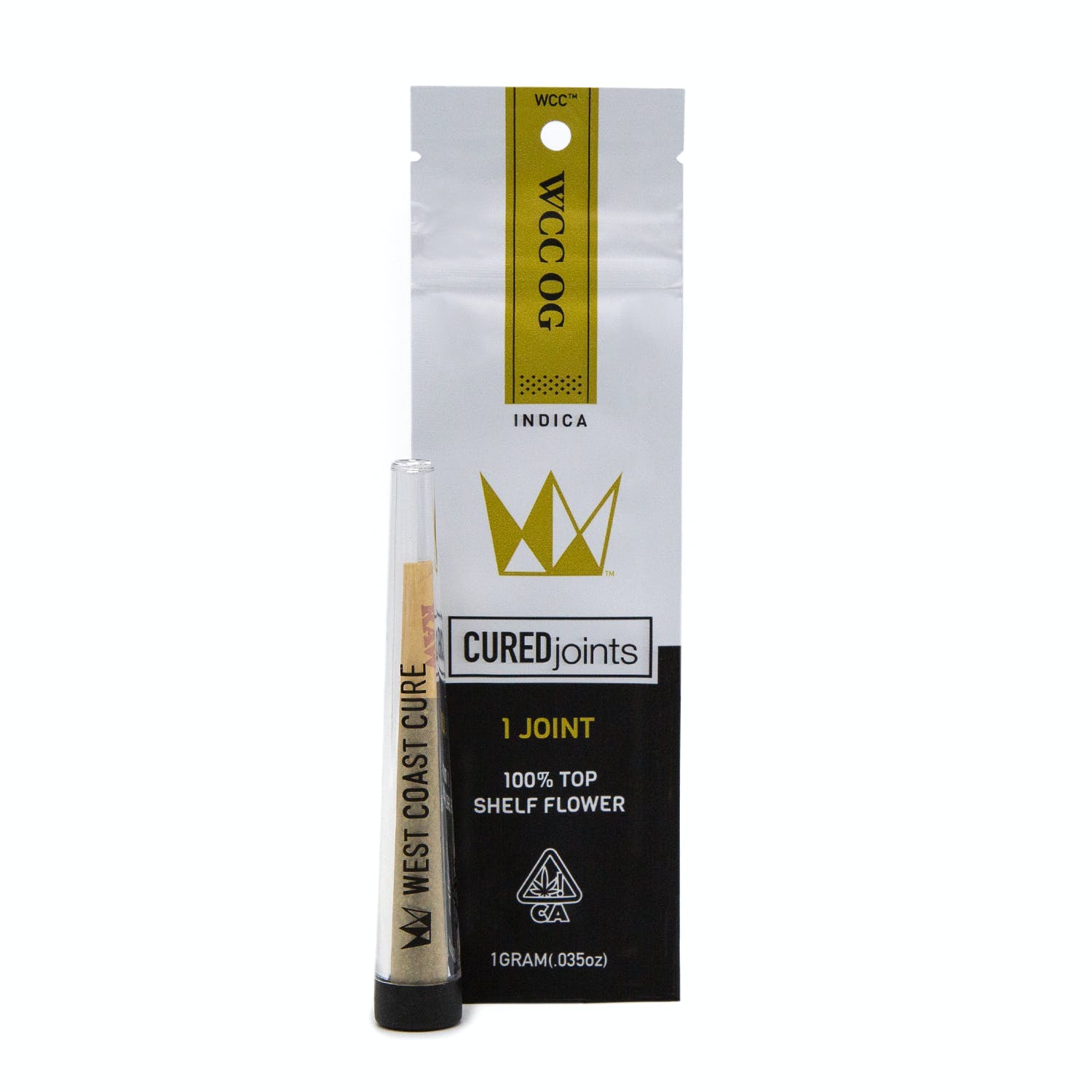 West Coast Cure's WCC OG CUREjoint is rolled from SoCal’s best OG flowers. Creating a powerful and proprietary joint with an unparalleled reputation this joint sparks the individual’s creative flow while extinguishing any negative energy. A perfect toke for a day-ending nightcap the WCC OG Joint has a distinct diesel-kush aroma. A strong Indica-dominant hybrid that’s known for its lemon fuel flavors and pinesol aroma WCC’s OG CUREjoints provide an extended respite of rest and relaxation. A great smoke for those moments of leisure.